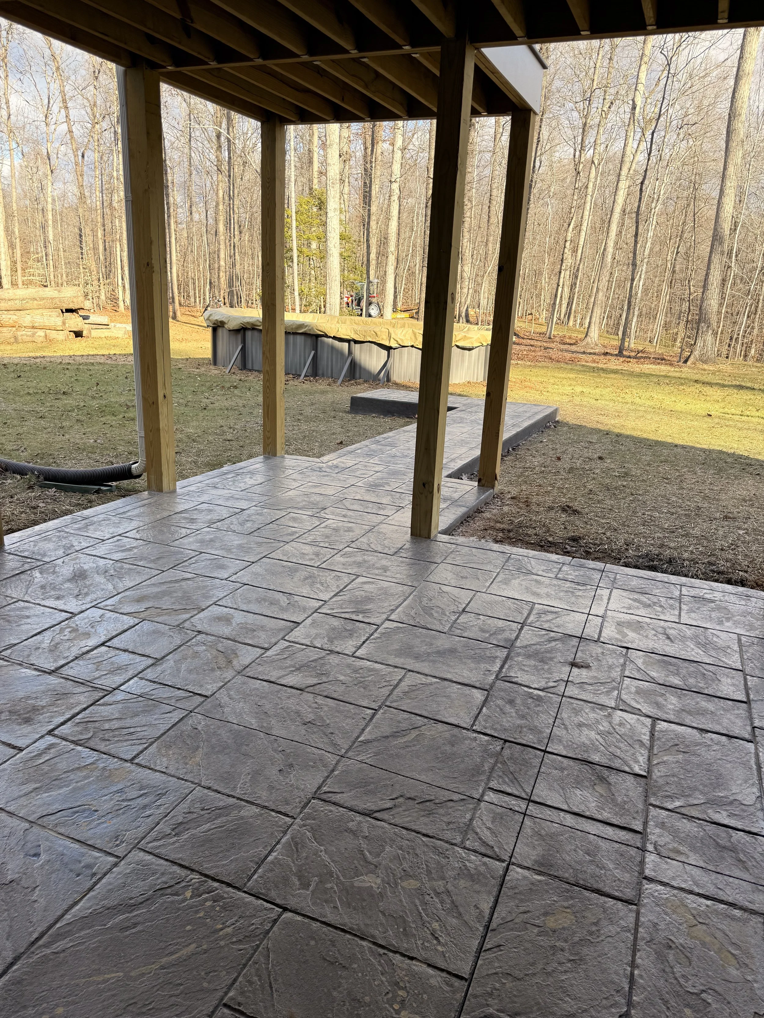 Decorative concrete patios designed to mimic stone, brick, or slate for a high-end finish.Concrete Patios